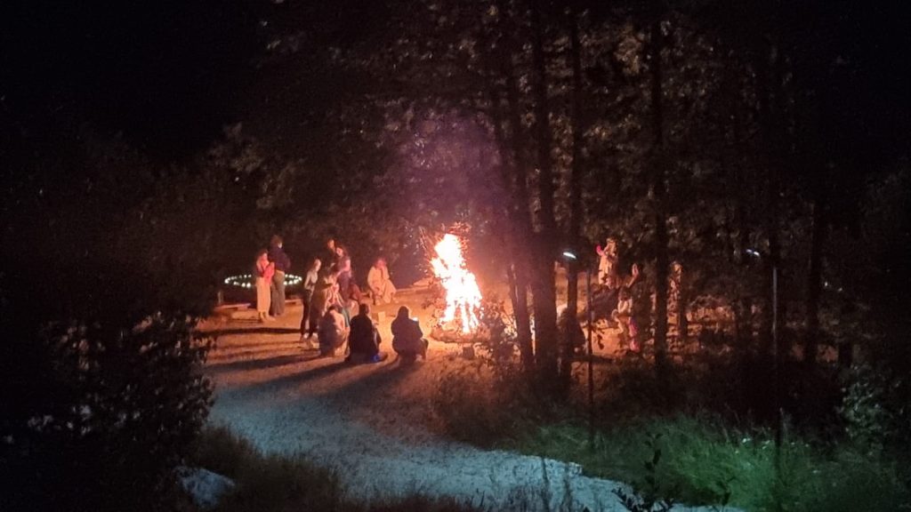 🔹 Foc de tabără & posibil cerc de sunet – ne dăm voie să ne jucăm cu vocea, și corpul ca instrumente și/sau să ne bucuram de momente de liniște, tăcere și conexiune la foc, sub cerul liber