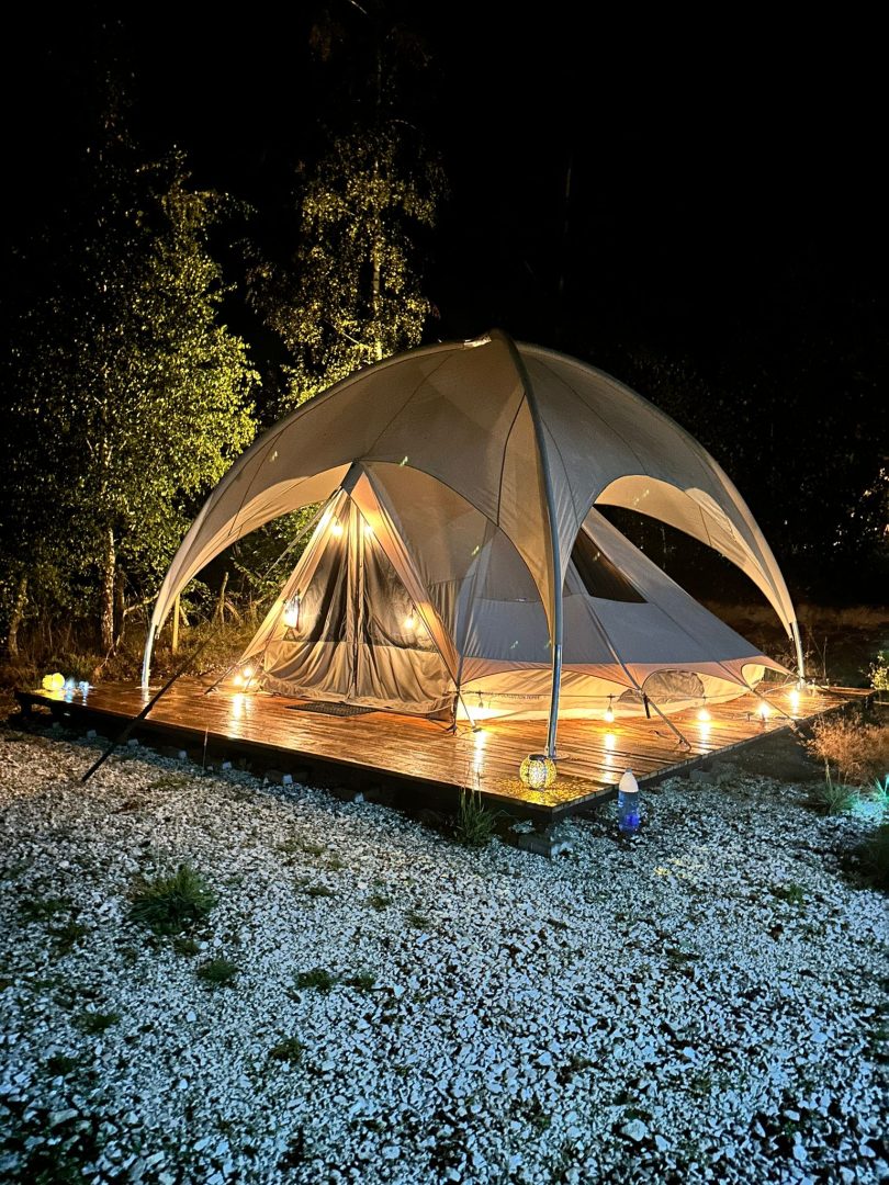 Vino alături de noi pentru o escapadă relaxantă, cu bună dispoziție și conectare, într-un loc de glamping, cu aer curat si pădure, unde dormim în corturi glam (cu aer condiționat😉) și ne trezim cu ciripit de păsări în loc de alarmă.